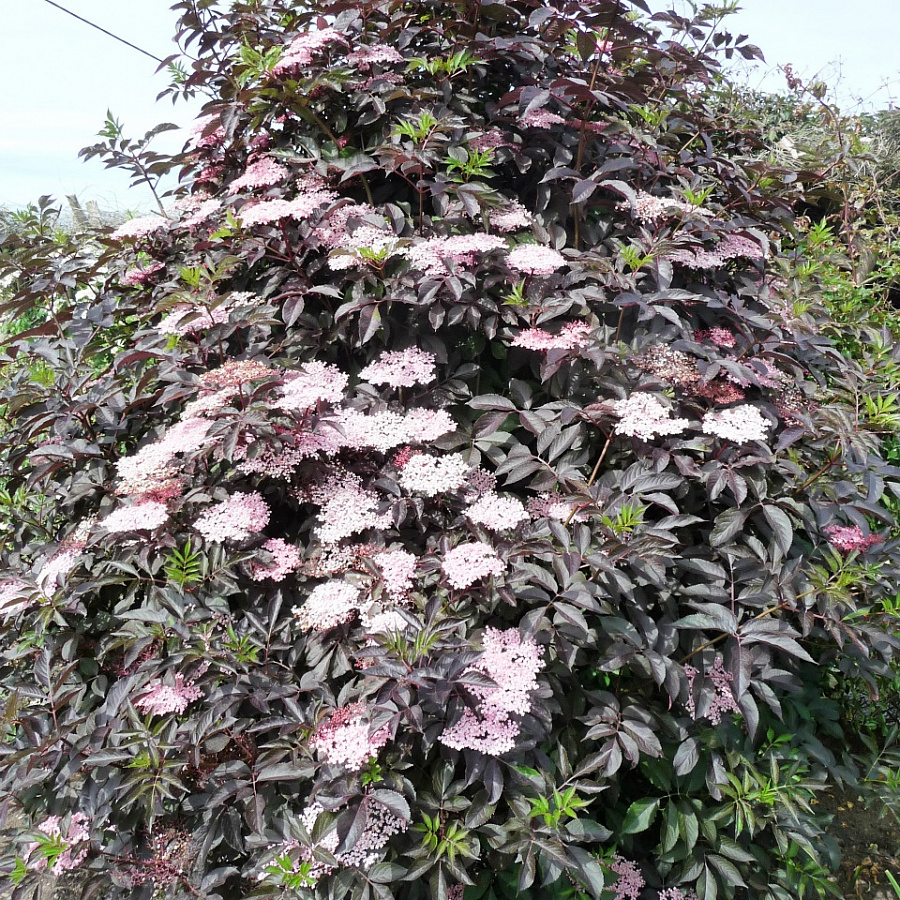 Саженцы бузины черной Зандерклауд (Thundercloud) вырастают в красивый кустарник очень быстро. Крупномеры бывают до четырех метров с пышной кроной в форме веера. Листва густая.