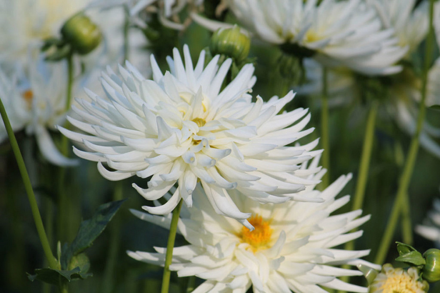 Луковицы георгины махровой Playa Blanca (Dáhlia variabilis) идеально подходят для формирования эффектных бордюров, украшения мест отдыха и создания красивых композиций. Высота взрослых кустов не превышает 45 сантиметров. Их плотные стебли не нуждаются в подвязке, а также не прогибаются под дождем. При благоприятных условиях цветение длится до октября. Посадив луковицы георгины Playa Blanca, вы украсите сад нежными белыми цветами с желтоватыми серединками. Растение предпочитает хорошо освещенные участки, но нуждается в защите от ветра. Кусты можно выращивать для срезки и последующего составления букетов.
