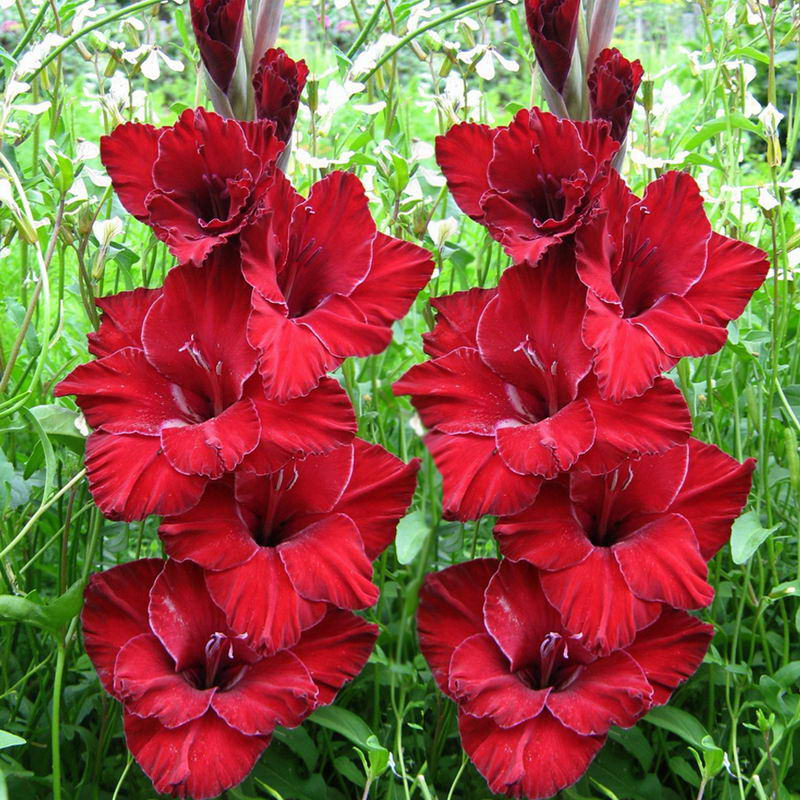 Луковицы гладиолуса гибридного Black Surprise используются для создания групповых и одиночных посадок, получения срезки в букеты. Высота растения в среднем около 100-120 см. Но отдельные экземпляры могут достигать до 150 см. Стебель вертикальный, одиночный, облиственный. Цветки темно-бордовые с легкими белыми стрелками. Не раскрывшиеся бутоны практически черного окраса. Период цветения длится с июля до сентября и сопровождается приятным ароматом. Выращивать гладиолусы гибридные Black Surprise рекомендуют на солнечных или частично освещенных участках, защищенных от сквозняков, без застоя влаги.